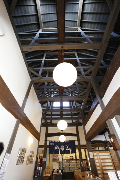 思わず見上げてしまう高さの玄関ホールは、100年以上前の民家に使用されていた木材を使用。歴史を感じさせる趣は、訪れる人を優しく迎えます。